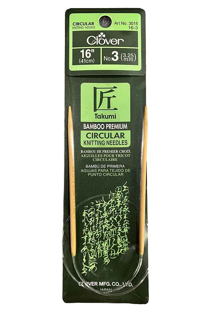 Aguja circular de bambú para tejer de 3.25 mm y cable de 41 cms de largo