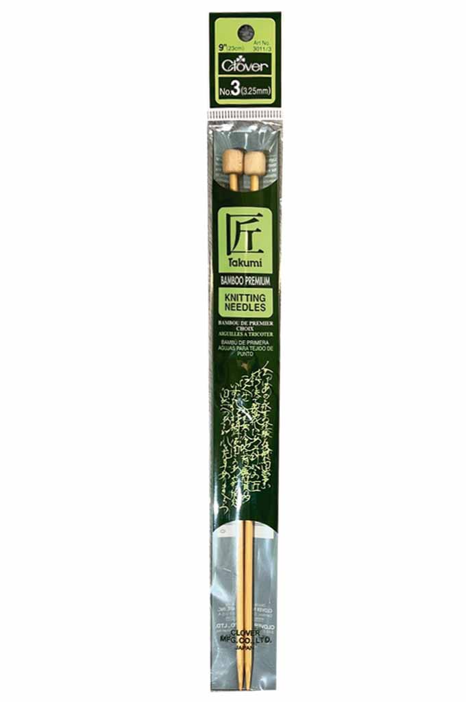 Aguja recta de bambú para tejer de 3.25 mm y 9″ de largo