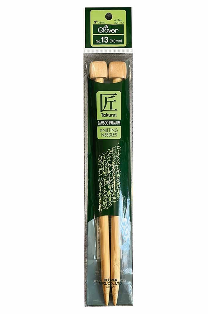 Aguja recta de bambú para tejer de 9 mm y 9″ de largo